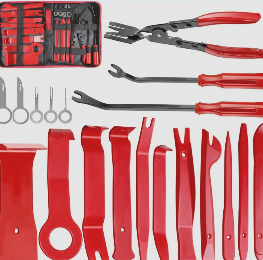 This 19-piece trim removal kit gives you everything you need to safely remove panels, clips, fasteners, dashboards, audio units, and upholstery without damaging your car’s interior. Durable, ergonomic tools paired with clip pliers make repairs easier and quicker. Perfect for DIYers, mechanics, and car enthusiasts—complete with a convenient storage bag.
