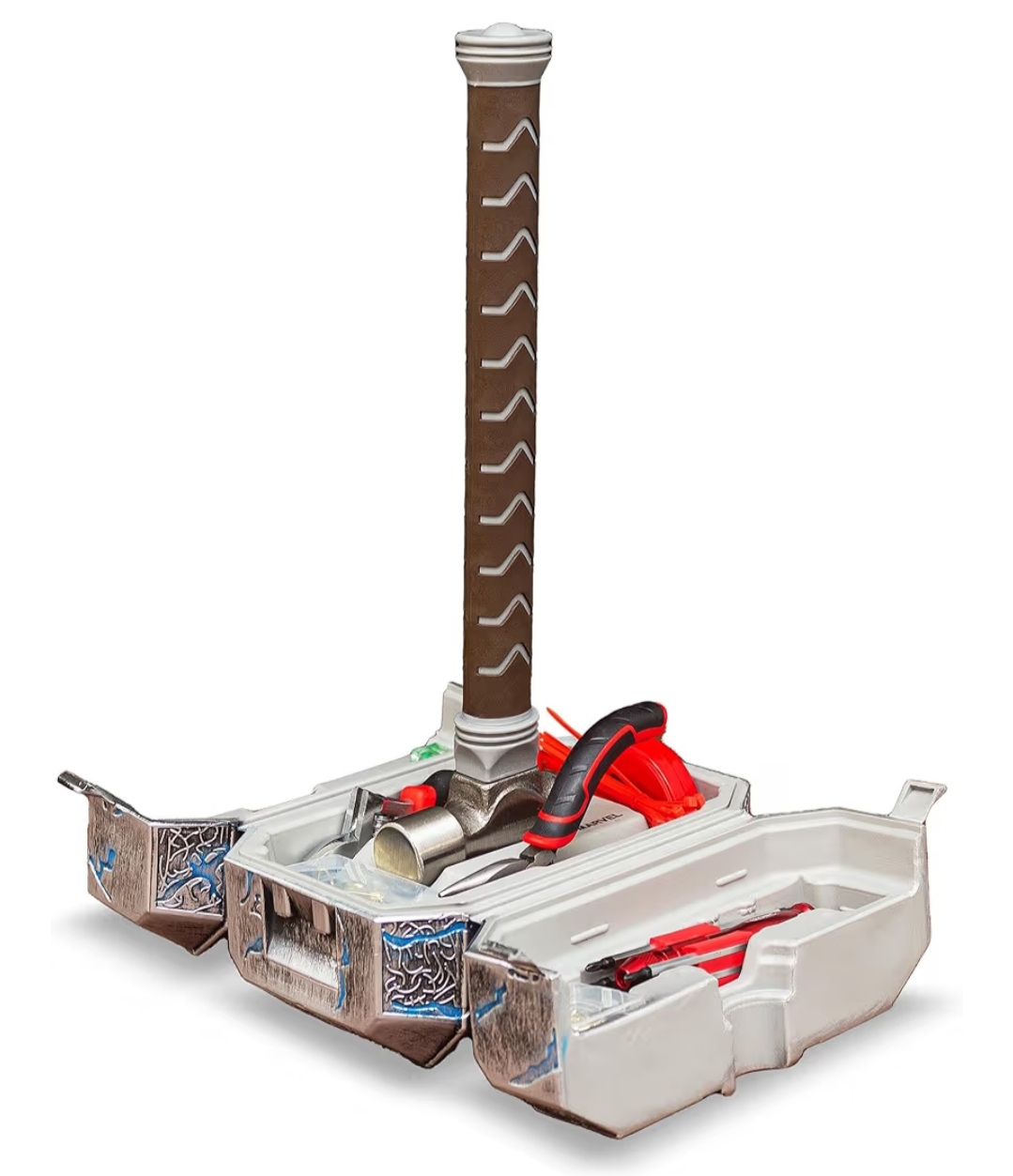 The Marvel Mighty Thor’s Hammer Mjolnir 91-Piece Tool Set blends everyday functionality with a recognizable Marvel design. Suitable for basic DIY projects or as a themed addition to a home workspace, it offers a unique way to keep essential tools organized.