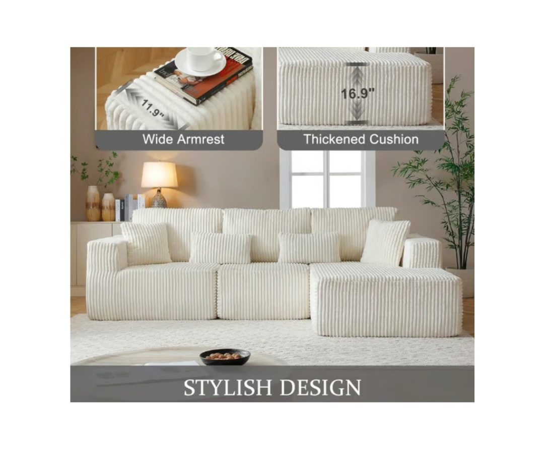 Experience ultimate comfort with the Modular Sectional Sofa Cloud Sectional Couch! Measuring 107 inches, this cozy and fluffy L-shaped sofa is designed with deep seats, memory foam cushions, and plush corduroy upholstery. Its boneless design offers a soft, cloud-like sitting experience, perfect for relaxing in your living room. The right-facing chaise adds extra lounging space, making it ideal for family gatherings or solo relaxation.