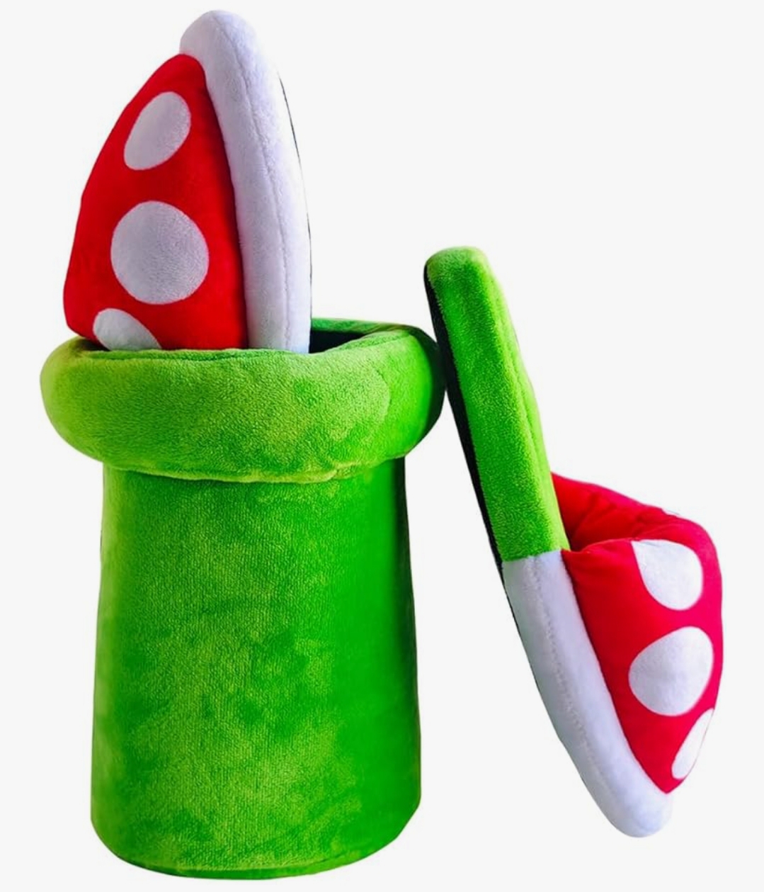 These Piranha Plants slippers offer a delightful combination of comfort, style, and functionality. With their soft materials, unique design, and practical pipe pot holder, they are a must-have for fans of the iconic video game character.