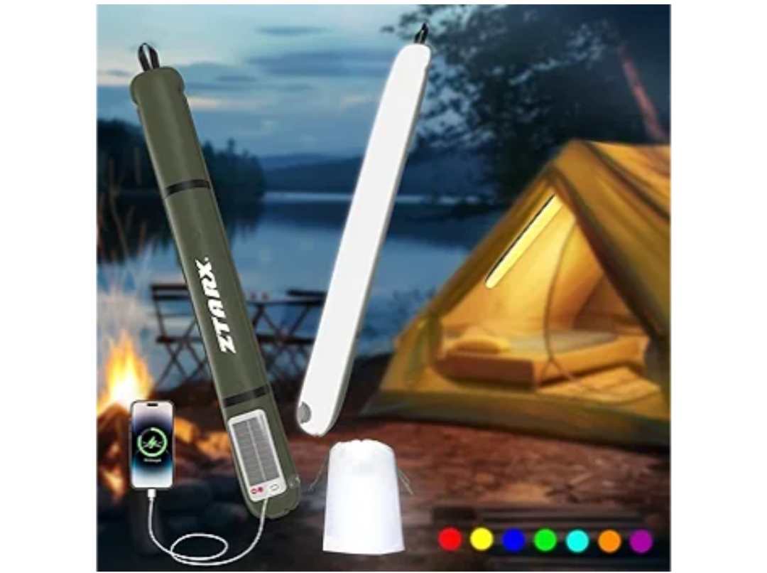 This multi-functional portable light is a practical tool designed for camping, outdoor activities, and emergency situations. It operates using both solar and electric charging, and features powerful LED lighting with multiple color options. It can be used as a handheld flashlight, a hanging lamp inside a tent, and even works as a power bank to charge your phone on the go. Its lightweight and compact design makes it an ideal choice for adventurers and outdoor enthusiasts.