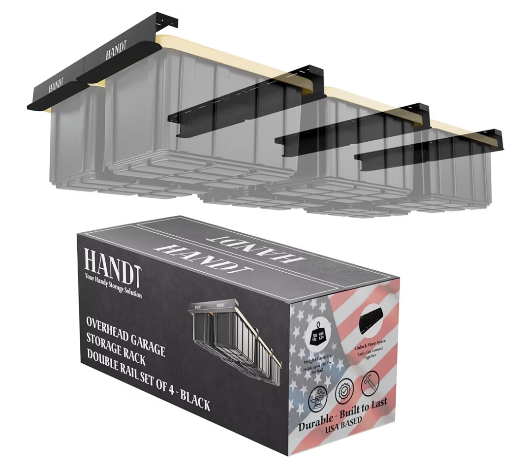 Introducing the HANDT Overhead Garage Storage Rack—a game-changing, connectable ceiling storage solution invented by a father-son team right here in the USA. Say goodbye to clutter and hello to smart, scalable storage that turns wasted ceiling space into heavy-duty organization. Whether you’re storing totes, tools, or seasonal gear, this customizable system supports up to 600 lbs across 6 bins—so you can store more, stress less, and reclaim your garage floor today.